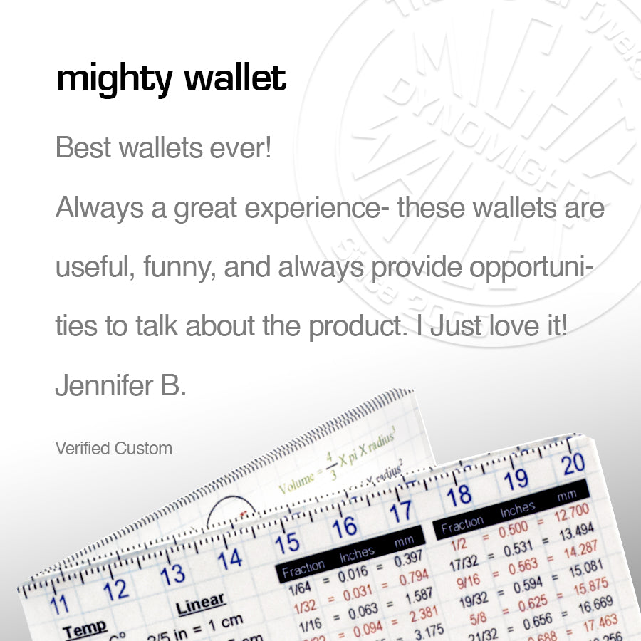 *Tyvek® is the same material as express mail envelopes making each Mighty Wallet tear-resistant, water-resistant and recyclable wallet.