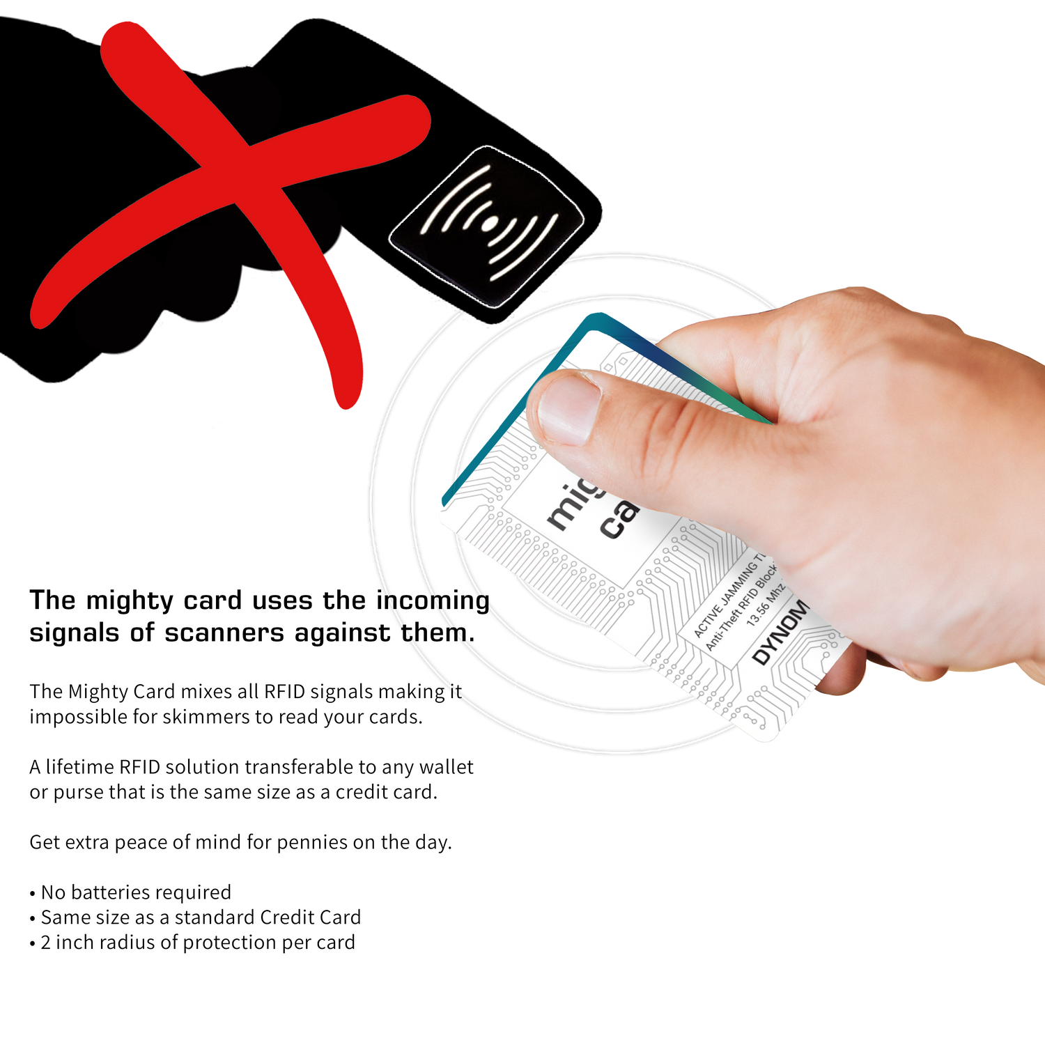 The Mighty Card RFID-blocking card is specifically designed to scramble the standard frequency of 13.56 Mhz for credit and debit cards with the RFID microchip.