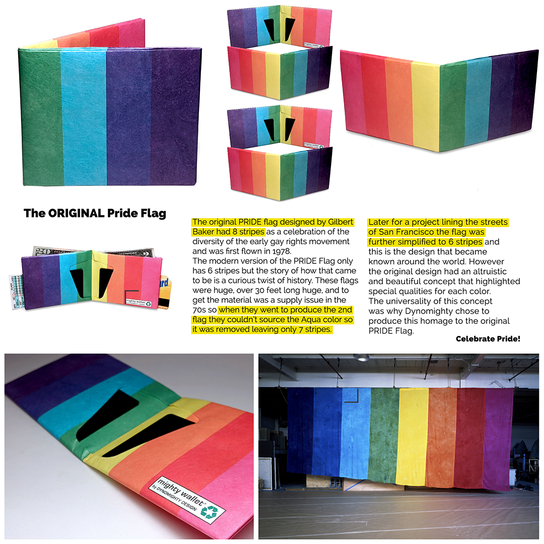 The PRIDE Mighty Wallet brings back a bit of Pride history with the 8-color variation of the Original Pride Flag that was the first beginning of this iconic flag.